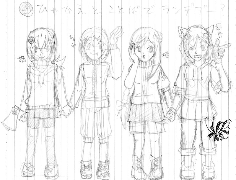 折角四人も描いたからちゃんと仕上げることにした。 というわけで下書きはこの辺でおしまい。 あとはPC作業。 ペン入れの練習じゃー。 四人も描けばちったぁマシになるだろ!