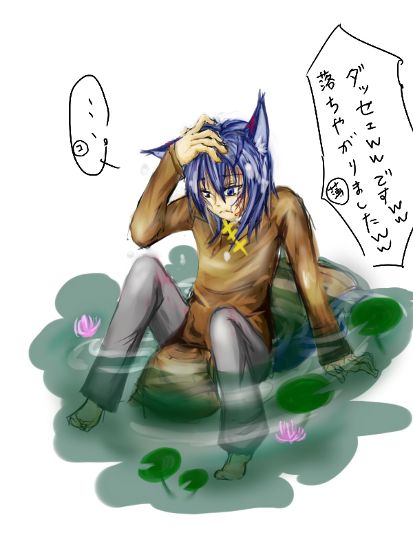 修業時代、薄紅と組み手してたら池に投げ落とされた人の図。