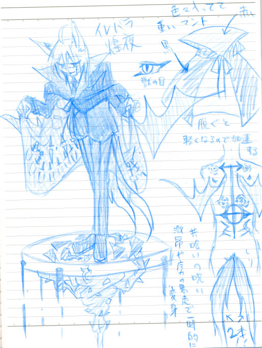 翼は逆羽。普段は出てない。激昂状態や魔力の暴走でプッチンすると出る。というか一時的に変身する。
